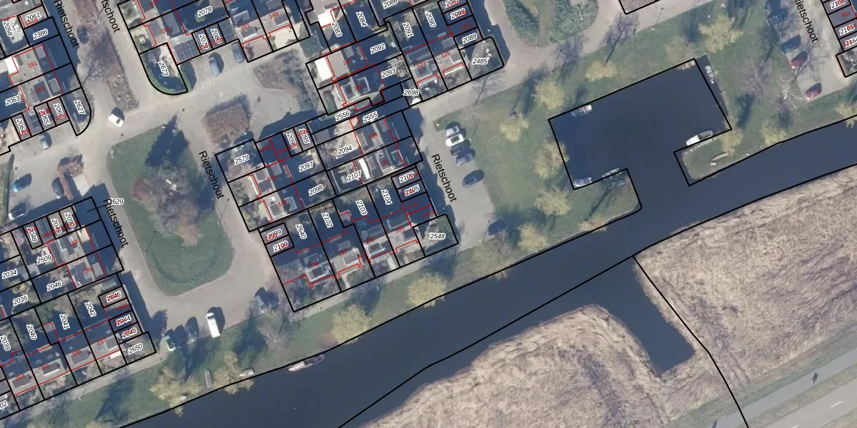 Rietschoot 131-d is gelegen op kadastraal perceel OZN00B2104. Deze kadastrale aanduiding is uniek en wordt gebruikt door het Kadaster om eigendomsrechten en andere zakelijke rechten vast te leggen. Het perceel maakt onderdeel uit van de kadastrale gemeente Oostzaan.