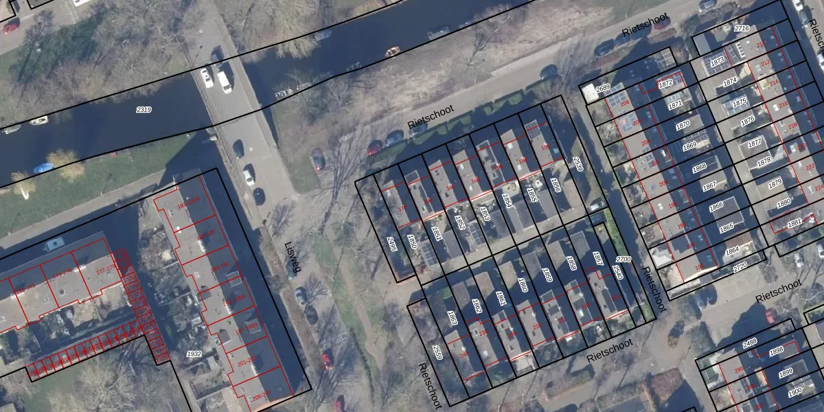 Het perceel waarop Rietschoot 178 staat heeft een oppervlakte van 193 m². Dit is een middelgroot perceel. De perceeloppervlakte wordt geregistreerd door het Kadaster. Gedetailleerde informatie over de maten van dit perceel kunt u vinden in het rapport Kadastrale kaart met maatvoering van Rietschoot 178.