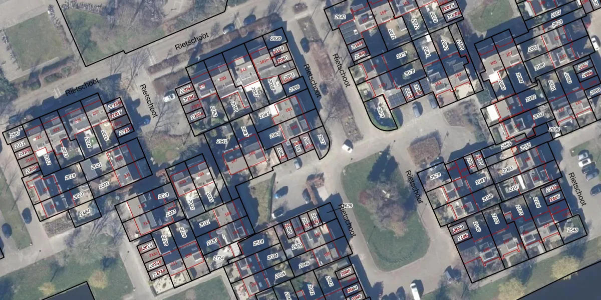 Rietschoot 183-b is gelegen op kadastraal perceel OZN00B2065. Deze kadastrale aanduiding is uniek en wordt gebruikt door het Kadaster om eigendomsrechten en andere zakelijke rechten vast te leggen. Het perceel maakt onderdeel uit van de kadastrale gemeente Oostzaan.