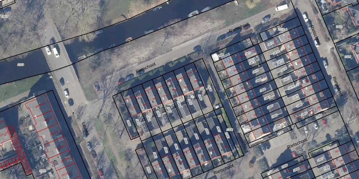 Het perceel waarop Rietschoot 186 staat heeft een oppervlakte van 189 m². Dit is een middelgroot perceel. De perceeloppervlakte wordt geregistreerd door het Kadaster. Gedetailleerde informatie over de maten van dit perceel kunt u vinden in het rapport Kadastrale kaart met maatvoering van Rietschoot 186.