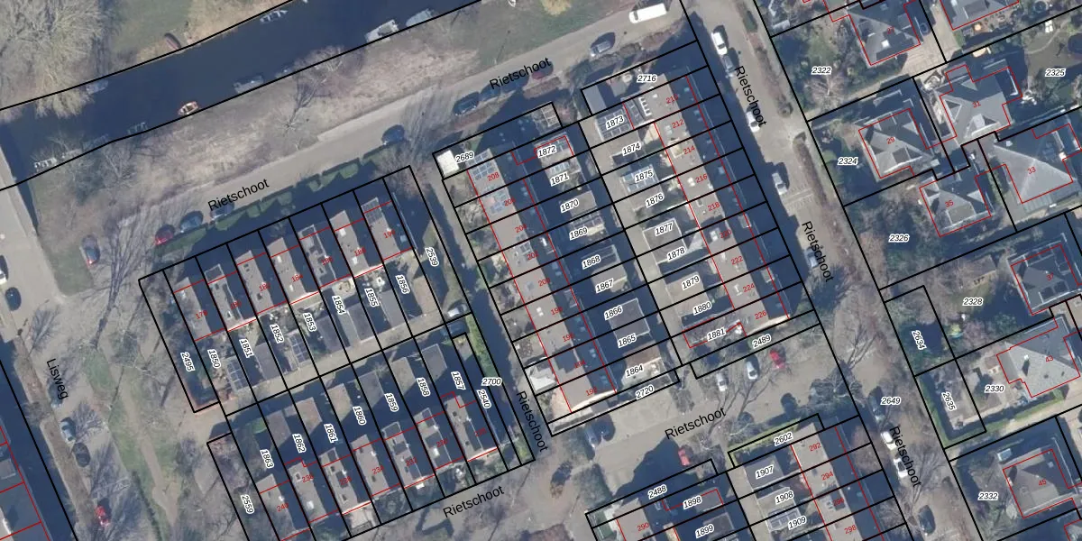 Het perceel waarop Rietschoot 200 staat heeft een oppervlakte van 145 m². Dit is een middelgroot perceel. De perceeloppervlakte wordt geregistreerd door het Kadaster. Gedetailleerde informatie over de maten van dit perceel kunt u vinden in het rapport Kadastrale kaart met maatvoering van Rietschoot 200.
