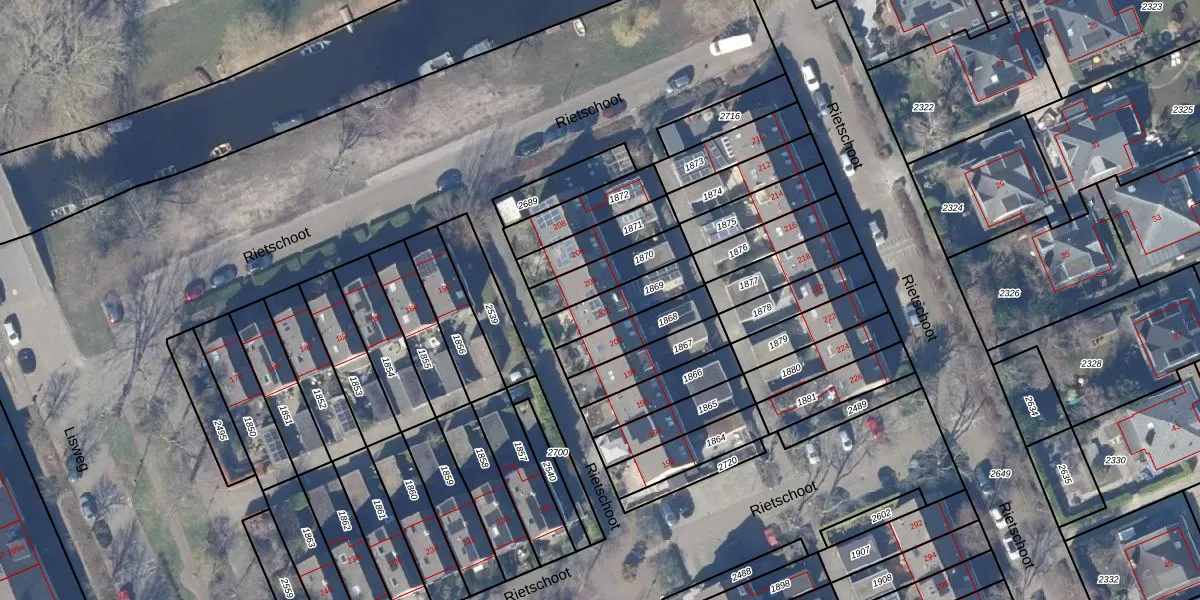 Het perceel waarop Rietschoot 202 staat heeft een oppervlakte van 145 m². Dit is een middelgroot perceel. De perceeloppervlakte wordt geregistreerd door het Kadaster. Gedetailleerde informatie over de maten van dit perceel kunt u vinden in het rapport Kadastrale kaart met maatvoering van Rietschoot 202.
