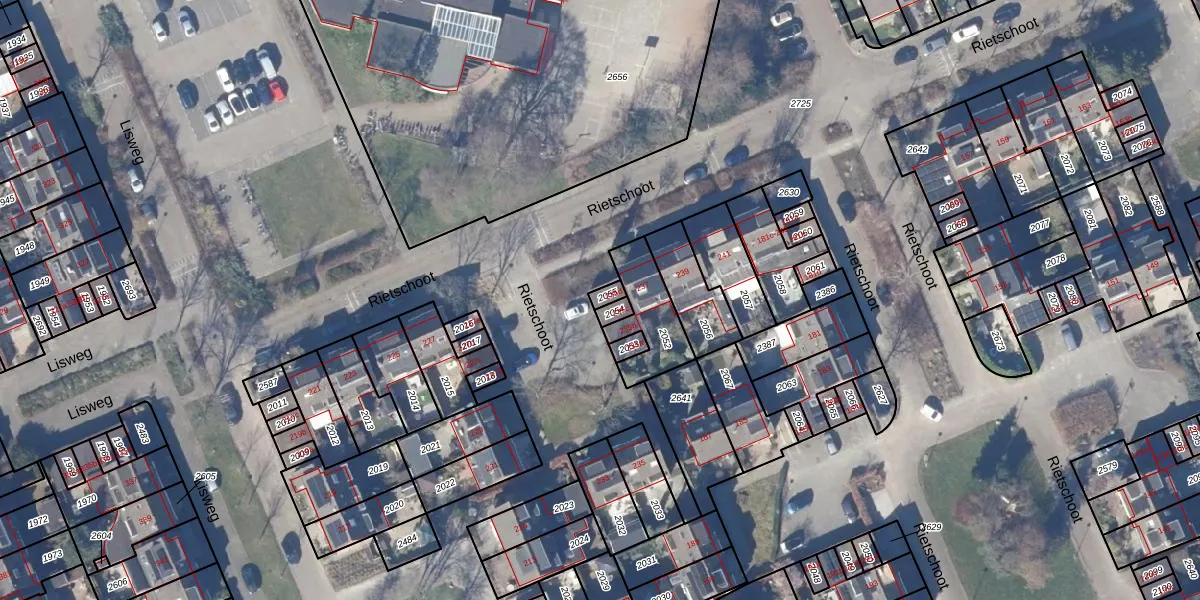 Het perceel waarop Rietschoot 235-d staat heeft een oppervlakte van 19 m². Dit is een klein perceel. De perceeloppervlakte wordt geregistreerd door het Kadaster. Gedetailleerde informatie over de maten van dit perceel kunt u vinden in het rapport Kadastrale kaart met maatvoering van Rietschoot 235-d.