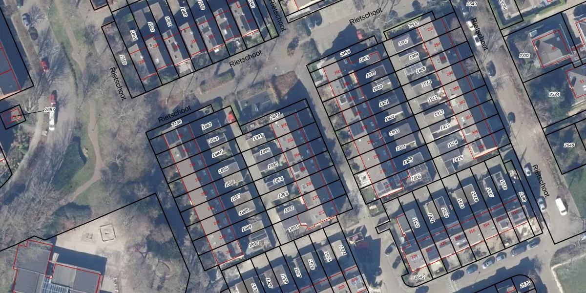 Het perceel waarop Rietschoot 262 staat heeft een oppervlakte van 147 m². Dit is een middelgroot perceel. De perceeloppervlakte wordt geregistreerd door het Kadaster. Gedetailleerde informatie over de maten van dit perceel kunt u vinden in het rapport Kadastrale kaart met maatvoering van Rietschoot 262.