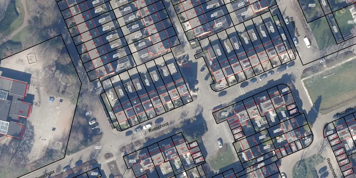 Het perceel waarop Rietschoot 326 staat heeft een oppervlakte van 166 m². Dit is een middelgroot perceel. De perceeloppervlakte wordt geregistreerd door het Kadaster. Gedetailleerde informatie over de maten van dit perceel kunt u vinden in het rapport Kadastrale kaart met maatvoering van Rietschoot 326.