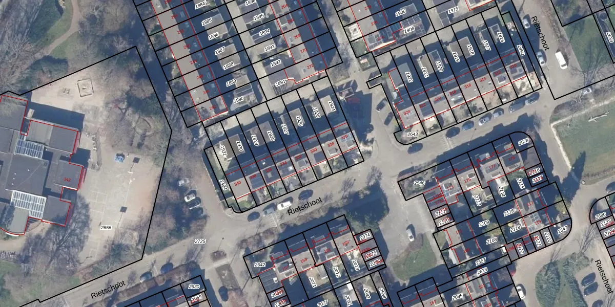 Het perceel waarop Rietschoot 330 staat heeft een oppervlakte van 162 m². Dit is een middelgroot perceel. De perceeloppervlakte wordt geregistreerd door het Kadaster. Gedetailleerde informatie over de maten van dit perceel kunt u vinden in het rapport Kadastrale kaart met maatvoering van Rietschoot 330.