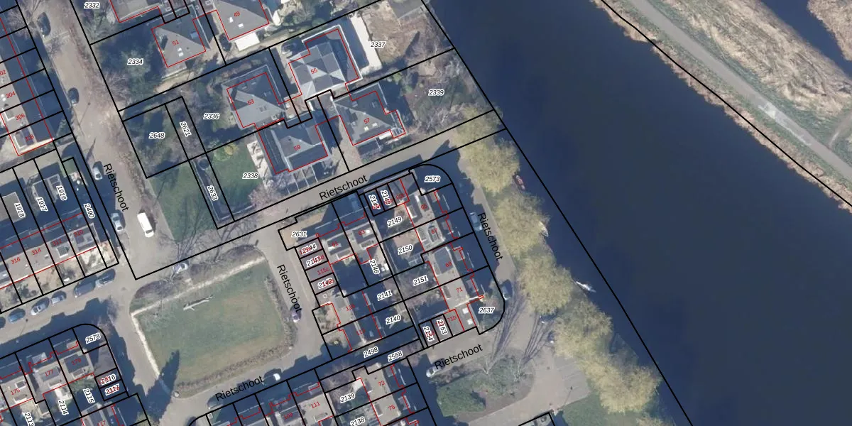 Het perceel waarop Rietschoot 65 staat heeft een oppervlakte van 178 m². Dit is een middelgroot perceel. De perceeloppervlakte wordt geregistreerd door het Kadaster. Gedetailleerde informatie over de maten van dit perceel kunt u vinden in het rapport Kadastrale kaart met maatvoering van Rietschoot 65.