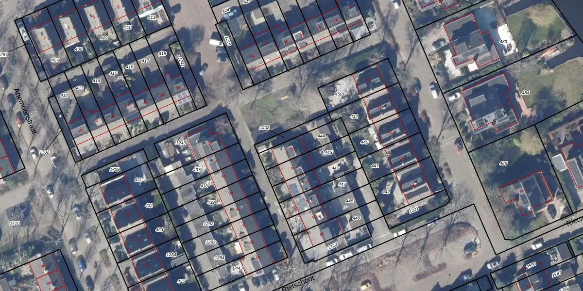Het perceel waarop Rietschoot 76 staat heeft een oppervlakte van 197 m². Dit is een middelgroot perceel. De perceeloppervlakte wordt geregistreerd door het Kadaster. Gedetailleerde informatie over de maten van dit perceel kunt u vinden in het rapport Kadastrale kaart met maatvoering van Rietschoot 76.