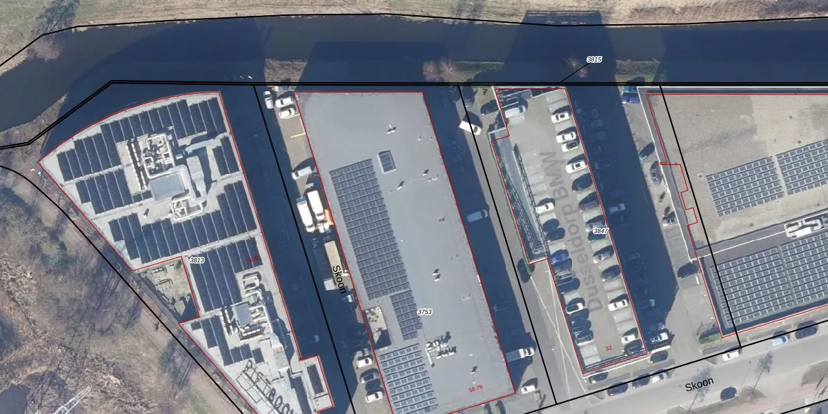 Het perceel waarop Skoon 66 staat heeft een oppervlakte van 4150 m². Dit is een zeer groot perceel. De perceeloppervlakte wordt geregistreerd door het Kadaster. Gedetailleerde informatie over de maten van dit perceel kunt u vinden in het rapport Kadastrale kaart met maatvoering van Skoon 66.