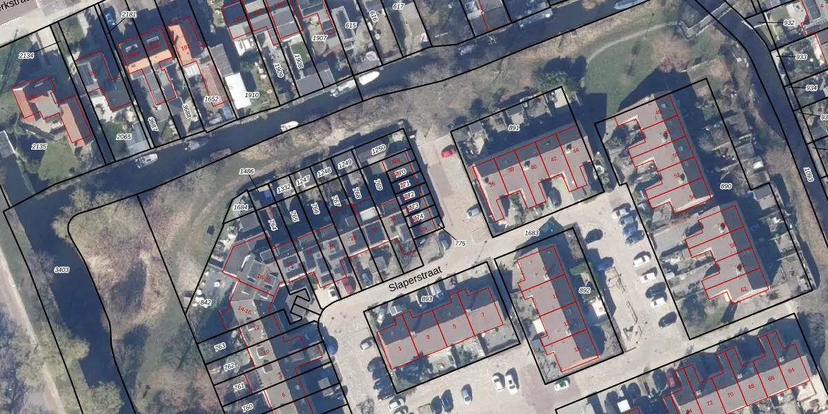 Het perceel waarop Slaperstraat 32-c staat heeft een oppervlakte van 23 m². Dit is een klein perceel. De perceeloppervlakte wordt geregistreerd door het Kadaster. Gedetailleerde informatie over de maten van dit perceel kunt u vinden in het rapport Kadastrale kaart met maatvoering van Slaperstraat 32-c.