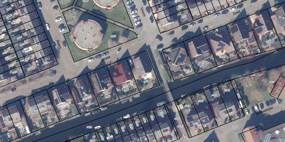 Het perceel waarop Snoek 1 staat heeft een oppervlakte van 383 m². Dit is een groot perceel. De perceeloppervlakte wordt geregistreerd door het Kadaster. Gedetailleerde informatie over de maten van dit perceel kunt u vinden in het rapport Kadastrale kaart met maatvoering van Snoek 1.