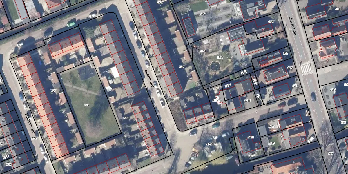 Het perceel waarop Starstraat 19 staat heeft een oppervlakte van 2075 m². Dit is een zeer groot perceel. De perceeloppervlakte wordt geregistreerd door het Kadaster. Gedetailleerde informatie over de maten van dit perceel kunt u vinden in het rapport Kadastrale kaart met maatvoering van Starstraat 19.