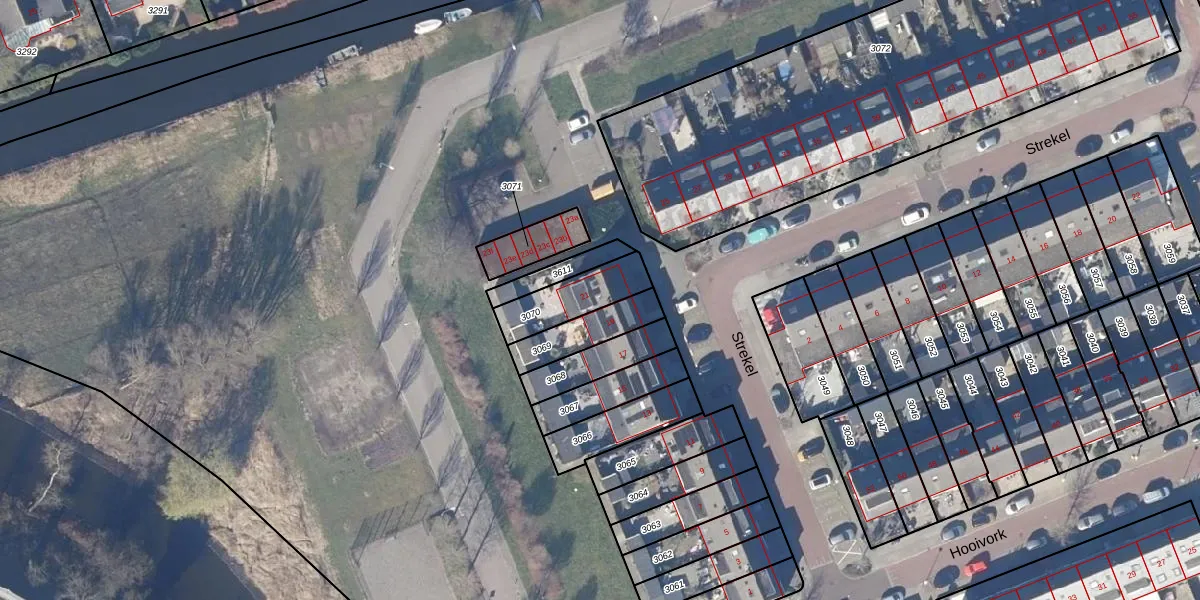 Het perceel waarop Strekel 21 staat heeft een oppervlakte van 174 m². Dit is een middelgroot perceel. De perceeloppervlakte wordt geregistreerd door het Kadaster. Gedetailleerde informatie over de maten van dit perceel kunt u vinden in het rapport Kadastrale kaart met maatvoering van Strekel 21.