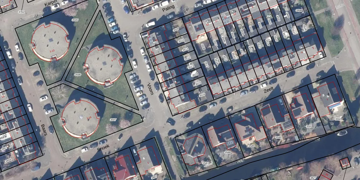Gebruik de zoekbalk of klik op een perceel voor informatie over de adressen binnen dit perceel.