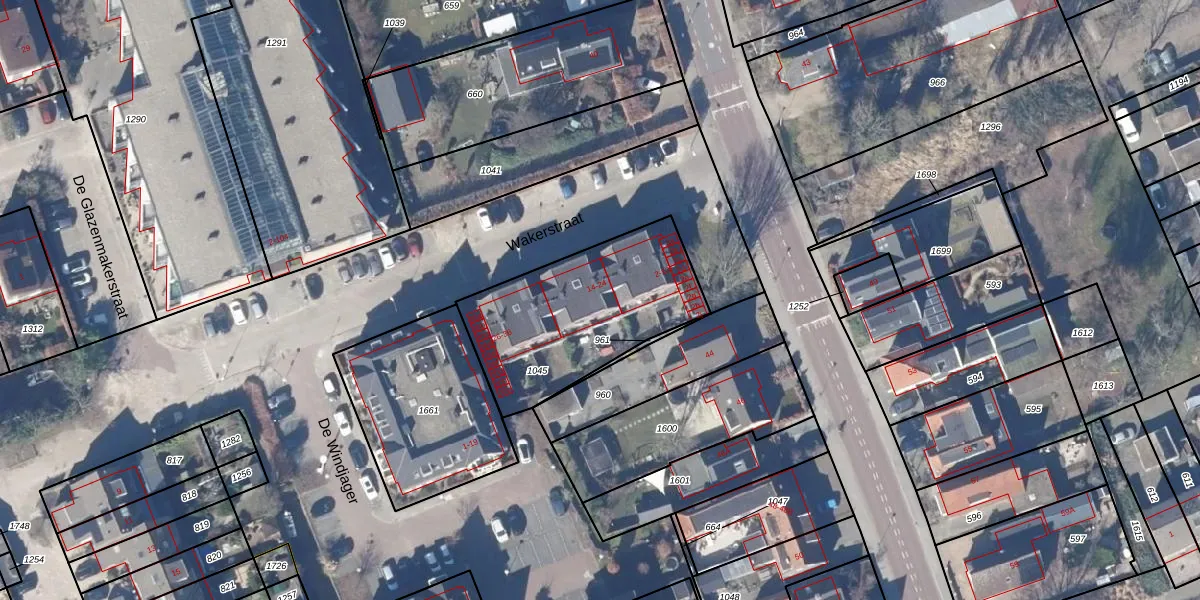 Het perceel waarop Wakerstraat 18 staat heeft een oppervlakte van 753 m². Dit is een groot perceel. De perceeloppervlakte wordt geregistreerd door het Kadaster. Gedetailleerde informatie over de maten van dit perceel kunt u vinden in het rapport Kadastrale kaart met maatvoering van Wakerstraat 18.