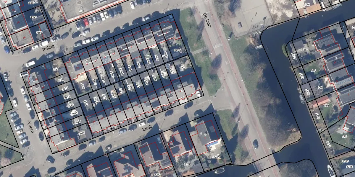 Gebruik de zoekbalk of klik op een perceel voor informatie over de adressen binnen dit perceel.
