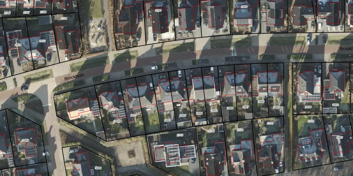 Het perceel waarop Brookhuis 15 staat heeft een oppervlakte van 300 m². Dit is een groot perceel. De perceeloppervlakte wordt geregistreerd door het Kadaster. Gedetailleerde informatie over de maten van dit perceel kunt u vinden in het rapport Kadastrale kaart met maatvoering van Brookhuis 15.