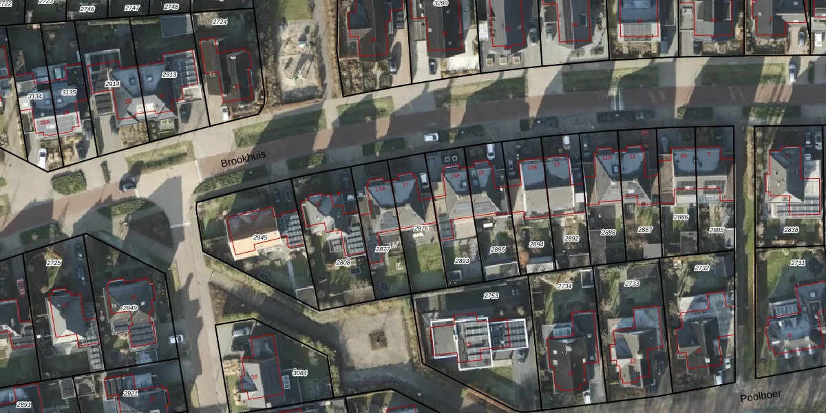 Het perceel waarop Brookhuis 17 staat heeft een oppervlakte van 300 m². Dit is een groot perceel. De perceeloppervlakte wordt geregistreerd door het Kadaster. Gedetailleerde informatie over de maten van dit perceel kunt u vinden in het rapport Kadastrale kaart met maatvoering van Brookhuis 17.
