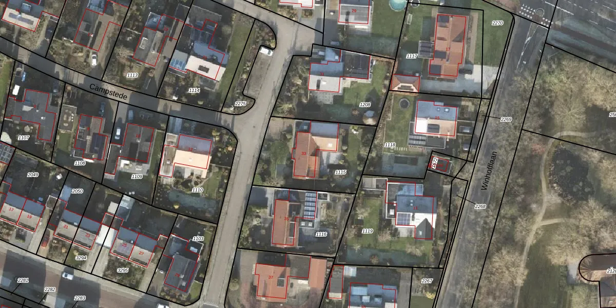 Gebruik de zoekbalk of klik op een perceel voor informatie over de adressen binnen dit perceel.