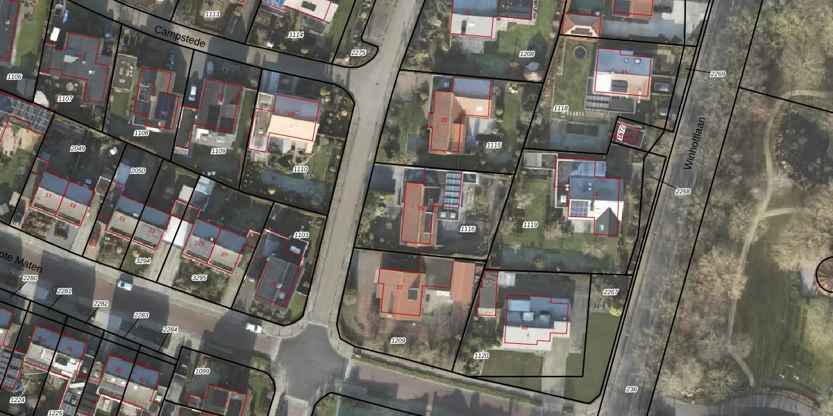 Gebruik de zoekbalk of klik op een perceel voor informatie over de adressen binnen dit perceel.