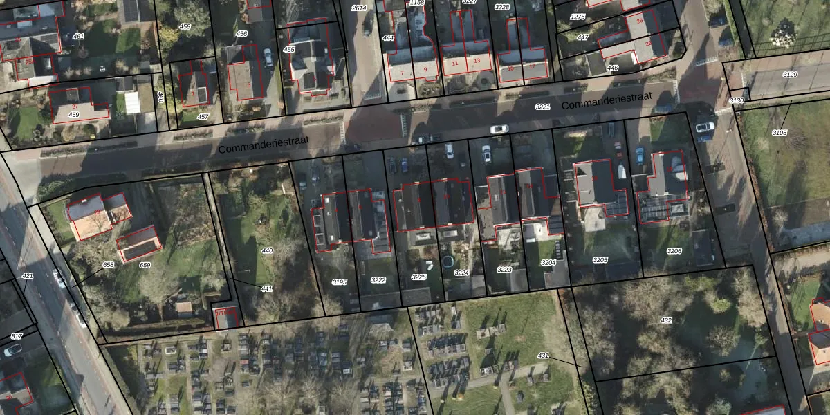 Het perceel waarop Commanderiestraat 8 staat heeft een oppervlakte van 399 m². Dit is een groot perceel. De perceeloppervlakte wordt geregistreerd door het Kadaster. Gedetailleerde informatie over de maten van dit perceel kunt u vinden in het rapport Kadastrale kaart met maatvoering van Commanderiestraat 8.