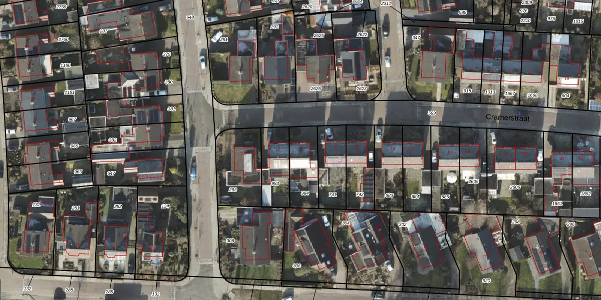 Het perceel waarop Cramerstraat 4 staat heeft een oppervlakte van 256 m². Dit is een middelgroot perceel. De perceeloppervlakte wordt geregistreerd door het Kadaster. Gedetailleerde informatie over de maten van dit perceel kunt u vinden in het rapport Kadastrale kaart met maatvoering van Cramerstraat 4.