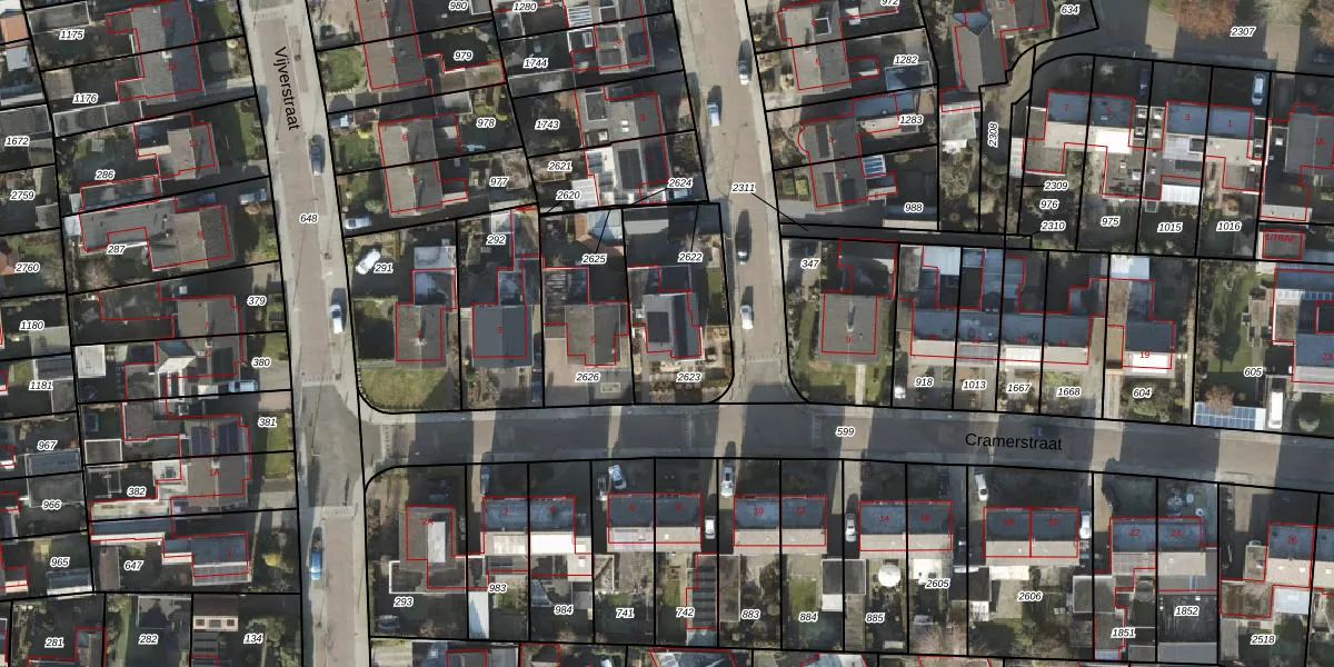 Het perceel waarop Cramerstraat 7 staat heeft een oppervlakte van 443 m². Dit is een groot perceel. De perceeloppervlakte wordt geregistreerd door het Kadaster. Gedetailleerde informatie over de maten van dit perceel kunt u vinden in het rapport Kadastrale kaart met maatvoering van Cramerstraat 7.