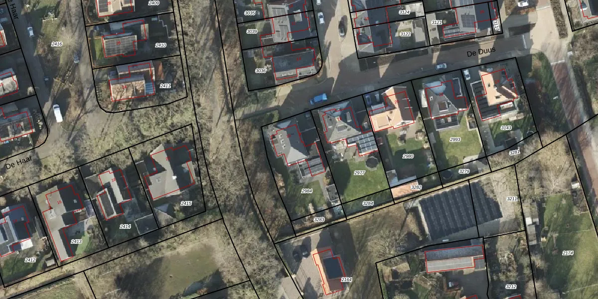 Het perceel waarop De Duus 16 staat heeft een oppervlakte van 606 m². Dit is een groot perceel. De perceeloppervlakte wordt geregistreerd door het Kadaster. Gedetailleerde informatie over de maten van dit perceel kunt u vinden in het rapport Kadastrale kaart met maatvoering van De Duus 16.