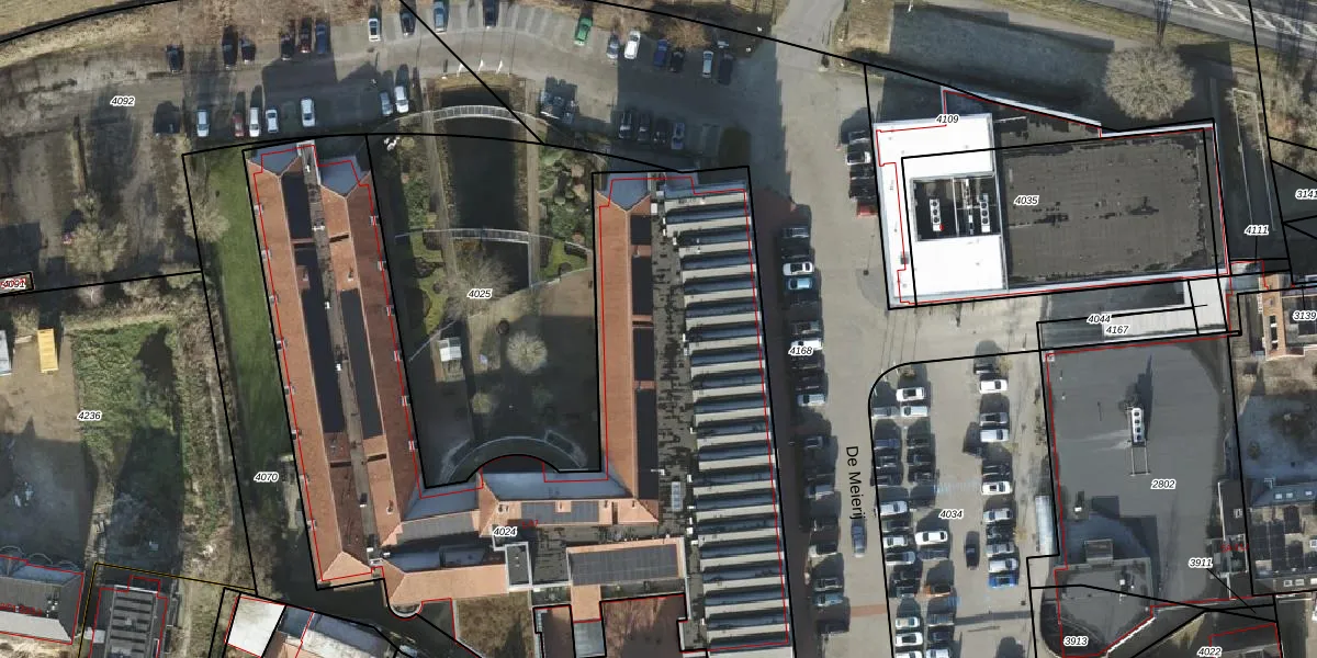 Het perceel waarop De Meierij 1-283 staat heeft een oppervlakte van 3893 m². Dit is een zeer groot perceel. De perceeloppervlakte wordt geregistreerd door het Kadaster. Gedetailleerde informatie over de maten van dit perceel kunt u vinden in het rapport Kadastrale kaart met maatvoering van De Meierij 1-283.