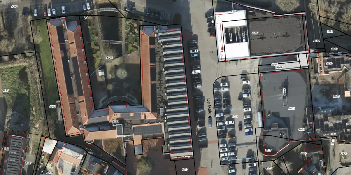 Het perceel waarop De Meierij 13 staat heeft een oppervlakte van 3893 m². Dit is een zeer groot perceel. De perceeloppervlakte wordt geregistreerd door het Kadaster. Gedetailleerde informatie over de maten van dit perceel kunt u vinden in het rapport Kadastrale kaart met maatvoering van De Meierij 13.