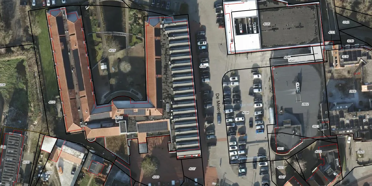 Het perceel waarop De Meierij 27 staat heeft een oppervlakte van 3893 m². Dit is een zeer groot perceel. De perceeloppervlakte wordt geregistreerd door het Kadaster. Gedetailleerde informatie over de maten van dit perceel kunt u vinden in het rapport Kadastrale kaart met maatvoering van De Meierij 27.