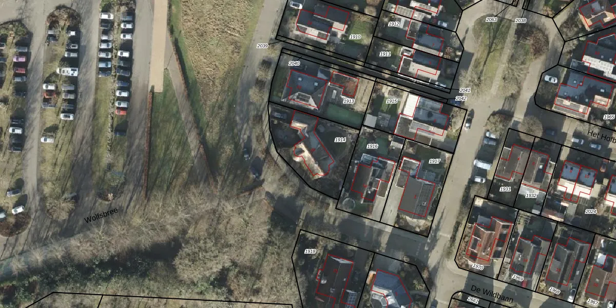 Gebruik de zoekbalk of klik op een perceel voor informatie over de adressen binnen dit perceel.