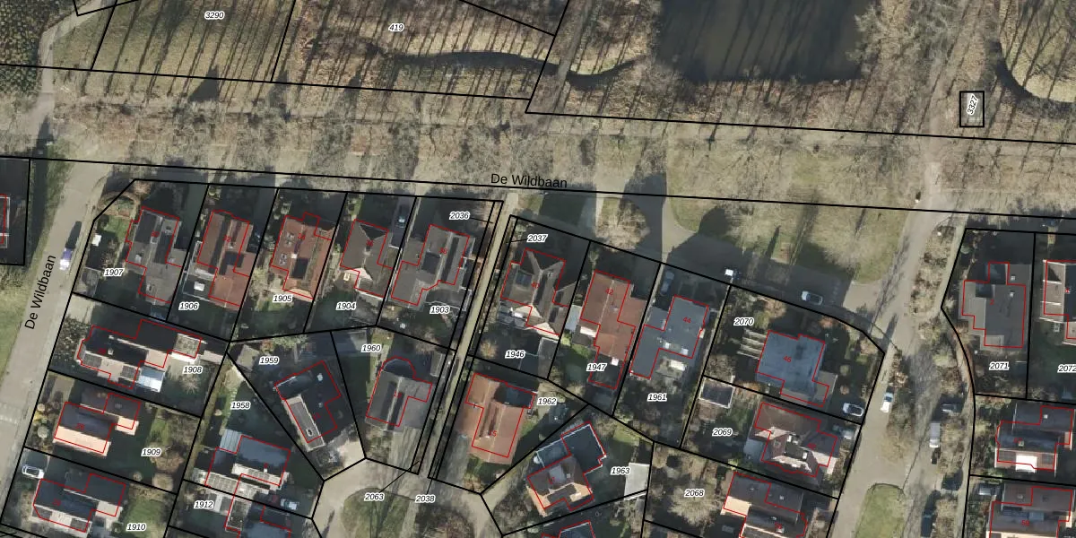 Het perceel waarop De Wildbaan 40 staat heeft een oppervlakte van 385 m². Dit is een groot perceel. De perceeloppervlakte wordt geregistreerd door het Kadaster. Gedetailleerde informatie over de maten van dit perceel kunt u vinden in het rapport Kadastrale kaart met maatvoering van De Wildbaan 40.