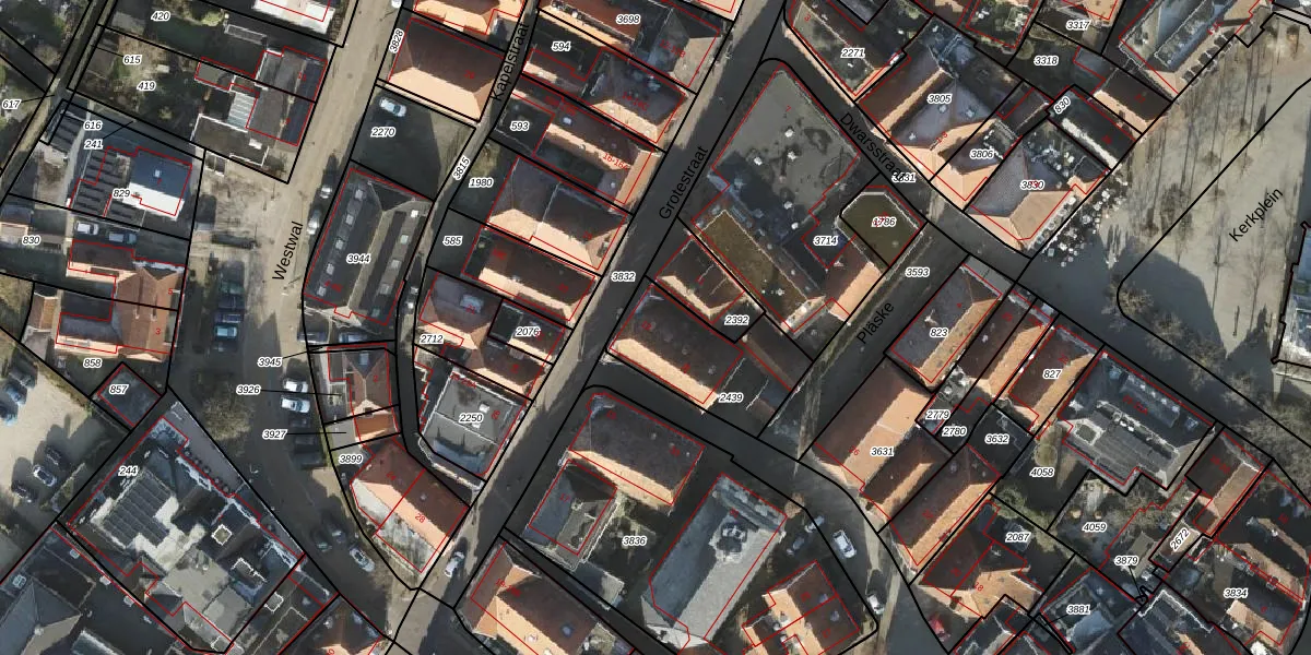 Het perceel waarop Grotestraat 13 staat heeft een oppervlakte van 380 m². Dit is een groot perceel. De perceeloppervlakte wordt geregistreerd door het Kadaster. Gedetailleerde informatie over de maten van dit perceel kunt u vinden in het rapport Kadastrale kaart met maatvoering van Grotestraat 13.