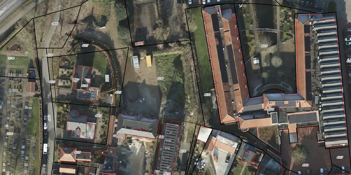 Het perceel waarop het Boschpad 4-11 staat heeft een oppervlakte van 4561 m². Dit is een zeer groot perceel. De perceeloppervlakte wordt geregistreerd door het Kadaster. Gedetailleerde informatie over de maten van dit perceel kunt u vinden in het rapport Kadastrale kaart met maatvoering van het Boschpad 4-11.