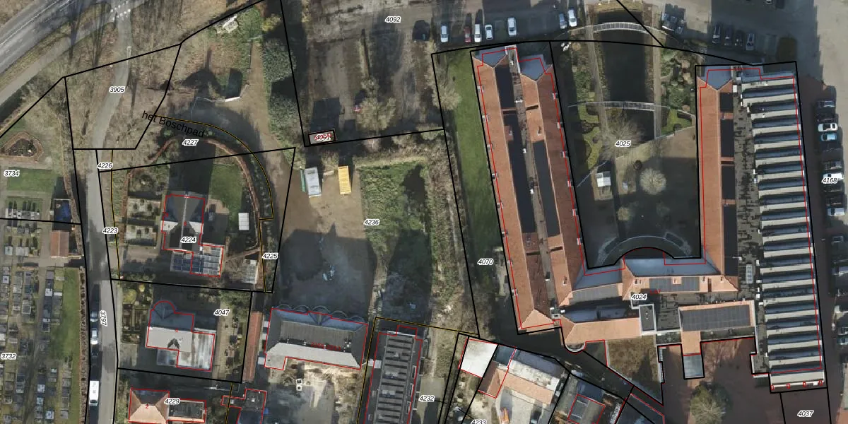Het perceel waarop het Boschpad 6-01 staat heeft een oppervlakte van 4561 m². Dit is een zeer groot perceel. De perceeloppervlakte wordt geregistreerd door het Kadaster. Gedetailleerde informatie over de maten van dit perceel kunt u vinden in het rapport Kadastrale kaart met maatvoering van het Boschpad 6-01.