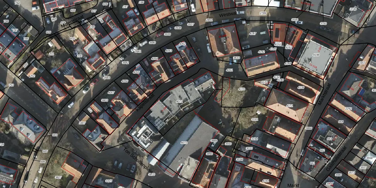 Het perceel waarop Kapelstraat 5-A staat heeft een oppervlakte van 675 m². Dit is een groot perceel. De perceeloppervlakte wordt geregistreerd door het Kadaster. Gedetailleerde informatie over de maten van dit perceel kunt u vinden in het rapport Kadastrale kaart met maatvoering van Kapelstraat 5-A.