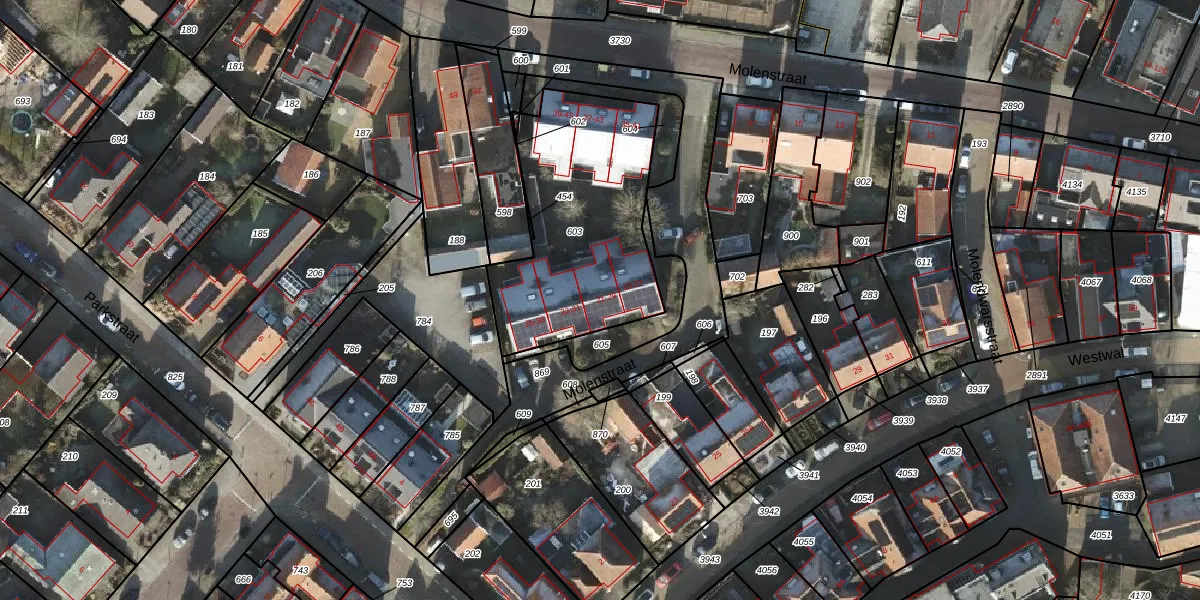 Het perceel waarop Molenstraat 21 staat heeft een oppervlakte van 909 m². Dit is een groot perceel. De perceeloppervlakte wordt geregistreerd door het Kadaster. Gedetailleerde informatie over de maten van dit perceel kunt u vinden in het rapport Kadastrale kaart met maatvoering van Molenstraat 21.