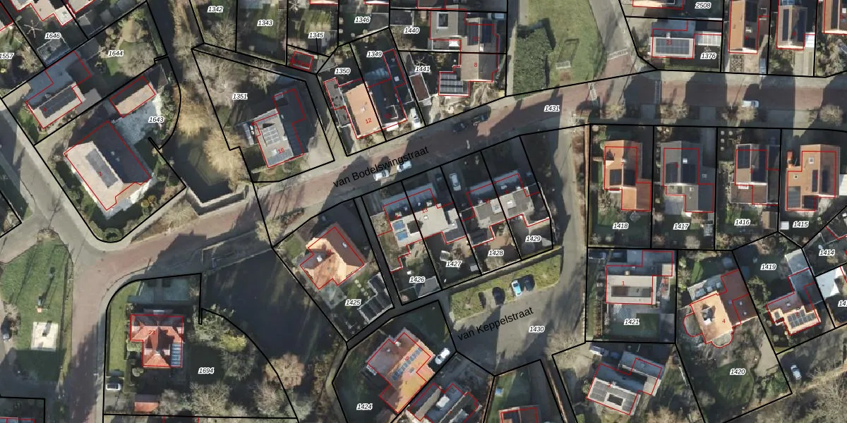 Gebruik de zoekbalk of klik op een perceel voor informatie over de adressen binnen dit perceel.