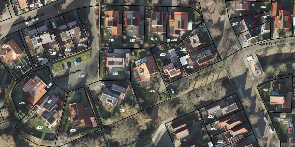Gebruik de zoekbalk of klik op een perceel voor informatie over de adressen binnen dit perceel.