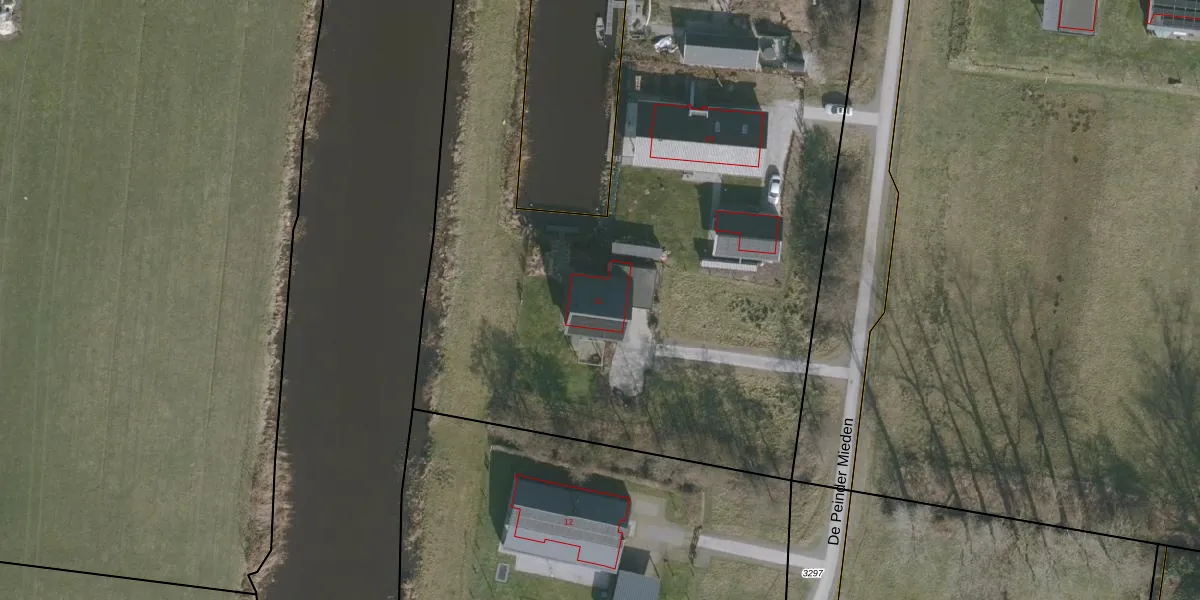 Het perceel waarop De Peinder Mieden 11 staat heeft een oppervlakte van 2,2 ha. Dit is een zeer groot perceel. De perceeloppervlakte wordt geregistreerd door het Kadaster. Gedetailleerde informatie over de maten van dit perceel kunt u vinden in het rapport Kadastrale kaart met maatvoering van De Peinder Mieden 11.