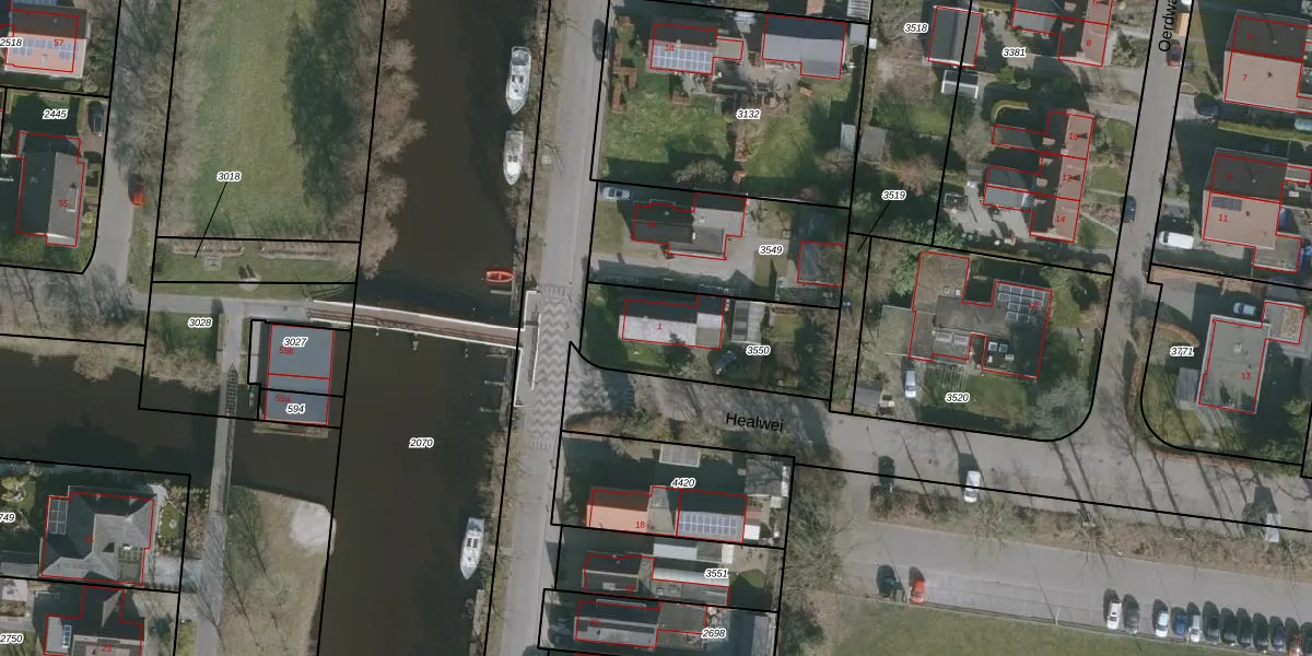 Het perceel waarop Healwei 1 staat heeft een oppervlakte van 511 m². Dit is een groot perceel. De perceeloppervlakte wordt geregistreerd door het Kadaster. Gedetailleerde informatie over de maten van dit perceel kunt u vinden in het rapport Kadastrale kaart met maatvoering van Healwei 1.