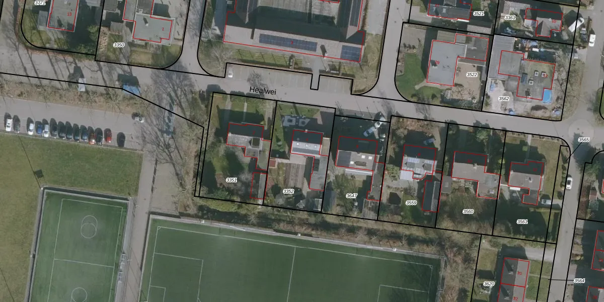 Het perceel waarop Healwei 4 staat heeft een oppervlakte van 681 m². Dit is een groot perceel. De perceeloppervlakte wordt geregistreerd door het Kadaster. Gedetailleerde informatie over de maten van dit perceel kunt u vinden in het rapport Kadastrale kaart met maatvoering van Healwei 4.