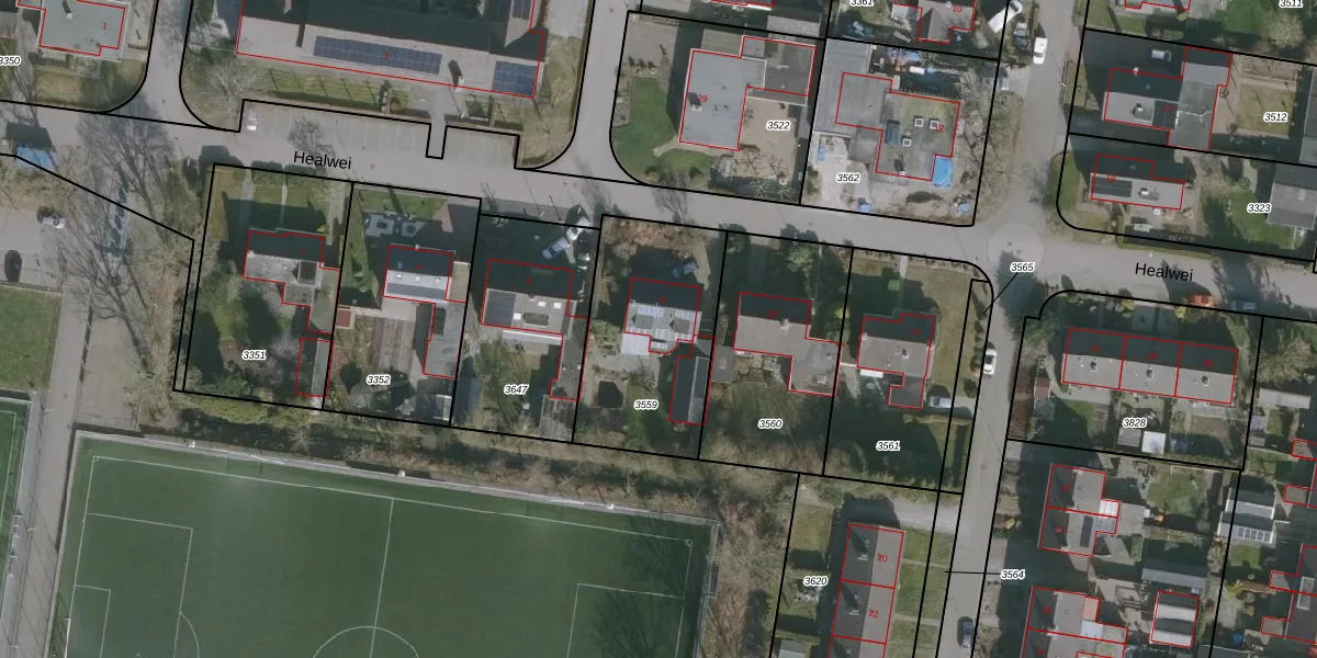 Het perceel waarop Healwei 8 staat heeft een oppervlakte van 671 m². Dit is een groot perceel. De perceeloppervlakte wordt geregistreerd door het Kadaster. Gedetailleerde informatie over de maten van dit perceel kunt u vinden in het rapport Kadastrale kaart met maatvoering van Healwei 8.