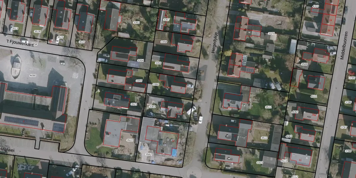Het perceel waarop Hegedykje 8 staat heeft een oppervlakte van 320 m². Dit is een groot perceel. De perceeloppervlakte wordt geregistreerd door het Kadaster. Gedetailleerde informatie over de maten van dit perceel kunt u vinden in het rapport Kadastrale kaart met maatvoering van Hegedykje 8.