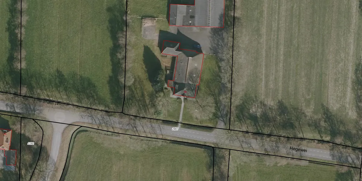 Het perceel waarop Hegewei 38 staat heeft een oppervlakte van 1,1 ha. Dit is een zeer groot perceel. De perceeloppervlakte wordt geregistreerd door het Kadaster. Gedetailleerde informatie over de maten van dit perceel kunt u vinden in het rapport Kadastrale kaart met maatvoering van Hegewei 38.