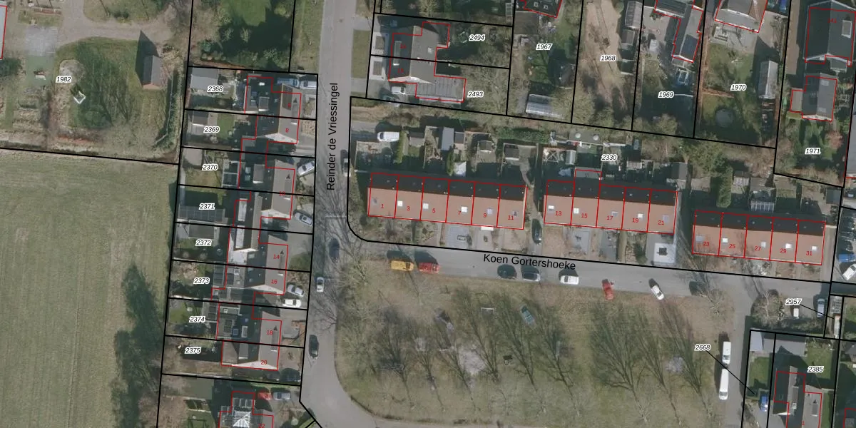 Koen Gortershoeke 5 is gelegen op kadastraal perceel ODG00F2330. Deze kadastrale aanduiding is uniek en wordt gebruikt door het Kadaster om eigendomsrechten en andere zakelijke rechten vast te leggen. Het perceel maakt onderdeel uit van de kadastrale gemeente Oudega.