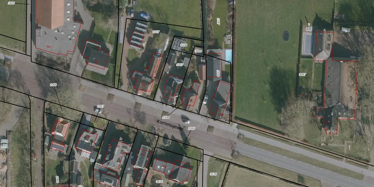 Het perceel waarop Kommisjewei 176 staat heeft een oppervlakte van 341 m². Dit is een groot perceel. De perceeloppervlakte wordt geregistreerd door het Kadaster. Gedetailleerde informatie over de maten van dit perceel kunt u vinden in het rapport Kadastrale kaart met maatvoering van Kommisjewei 176.