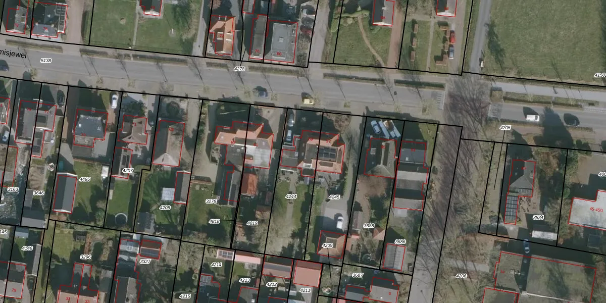 Het perceel waarop Kommisjewei 59 staat heeft een oppervlakte van 616 m². Dit is een groot perceel. De perceeloppervlakte wordt geregistreerd door het Kadaster. Gedetailleerde informatie over de maten van dit perceel kunt u vinden in het rapport Kadastrale kaart met maatvoering van Kommisjewei 59.