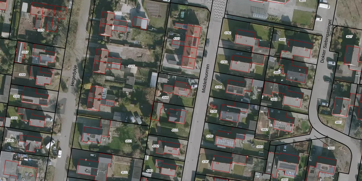 Gebruik de zoekbalk of klik op een perceel voor informatie over de adressen binnen dit perceel.
